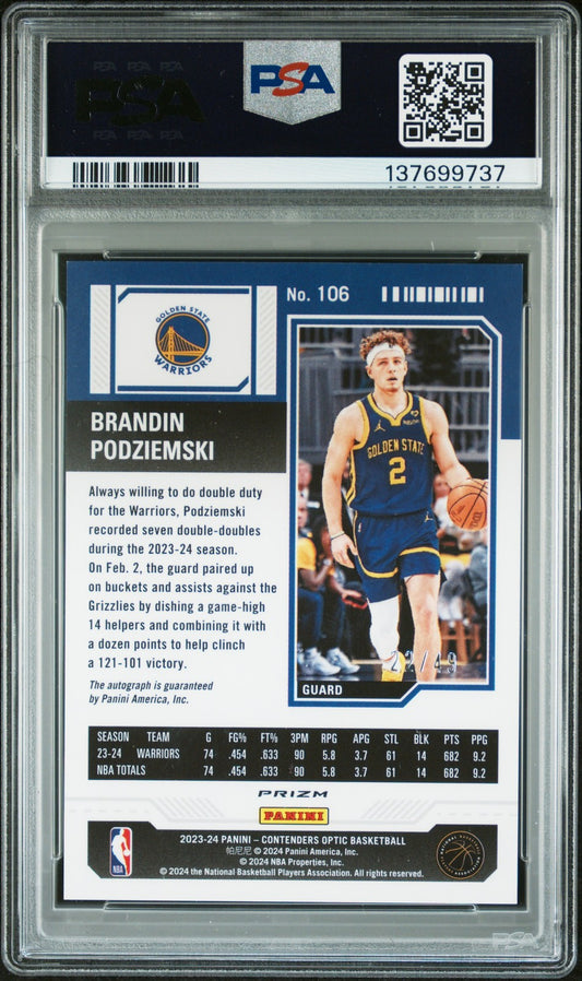 2023 Contenders Optic - BRANDIN PODZIEMSKI - AUTO Blue /49 - ROOKIE /49 - PSA