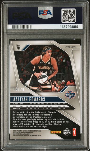 2024 Panini WNBA- Pink Velocity Prizm /79 - Aaliyah Edwards - ROOKIE /79 - PSA 9