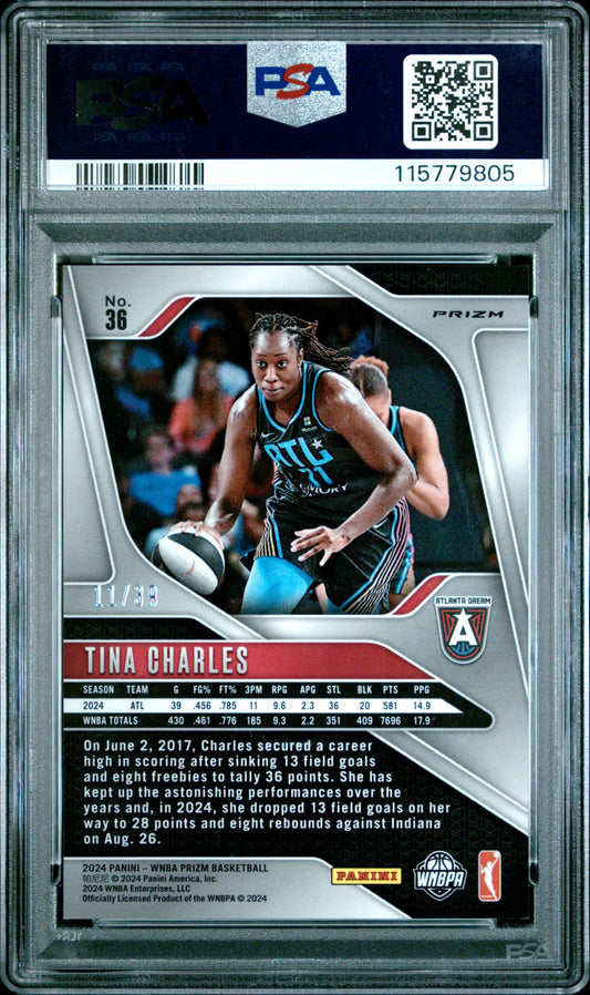 2024 Panini Prizm WNBA - Tina Charles #36 - Black Velocity /39 - PSA 9 - /39