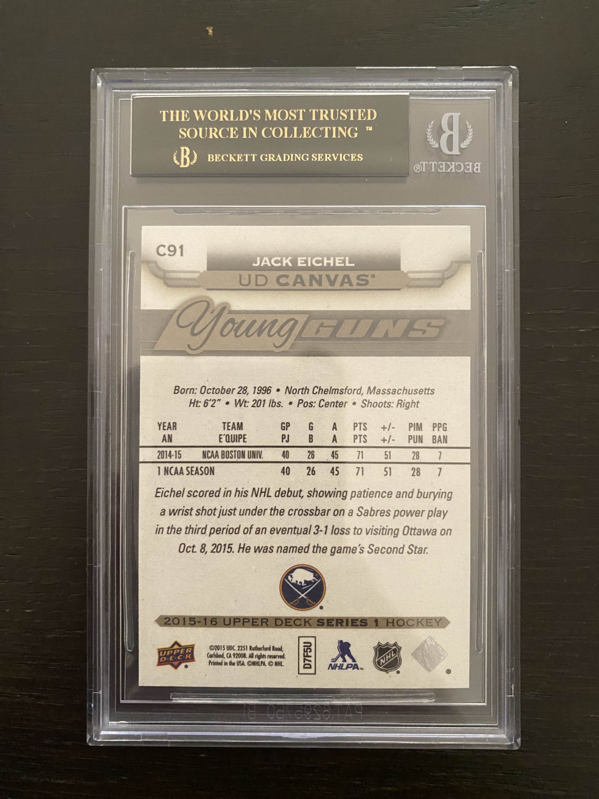 2015 Upper Deck -Jack Eichel YG RC - Young Guns - PRISTINE BLACK LABEL - BGS 10