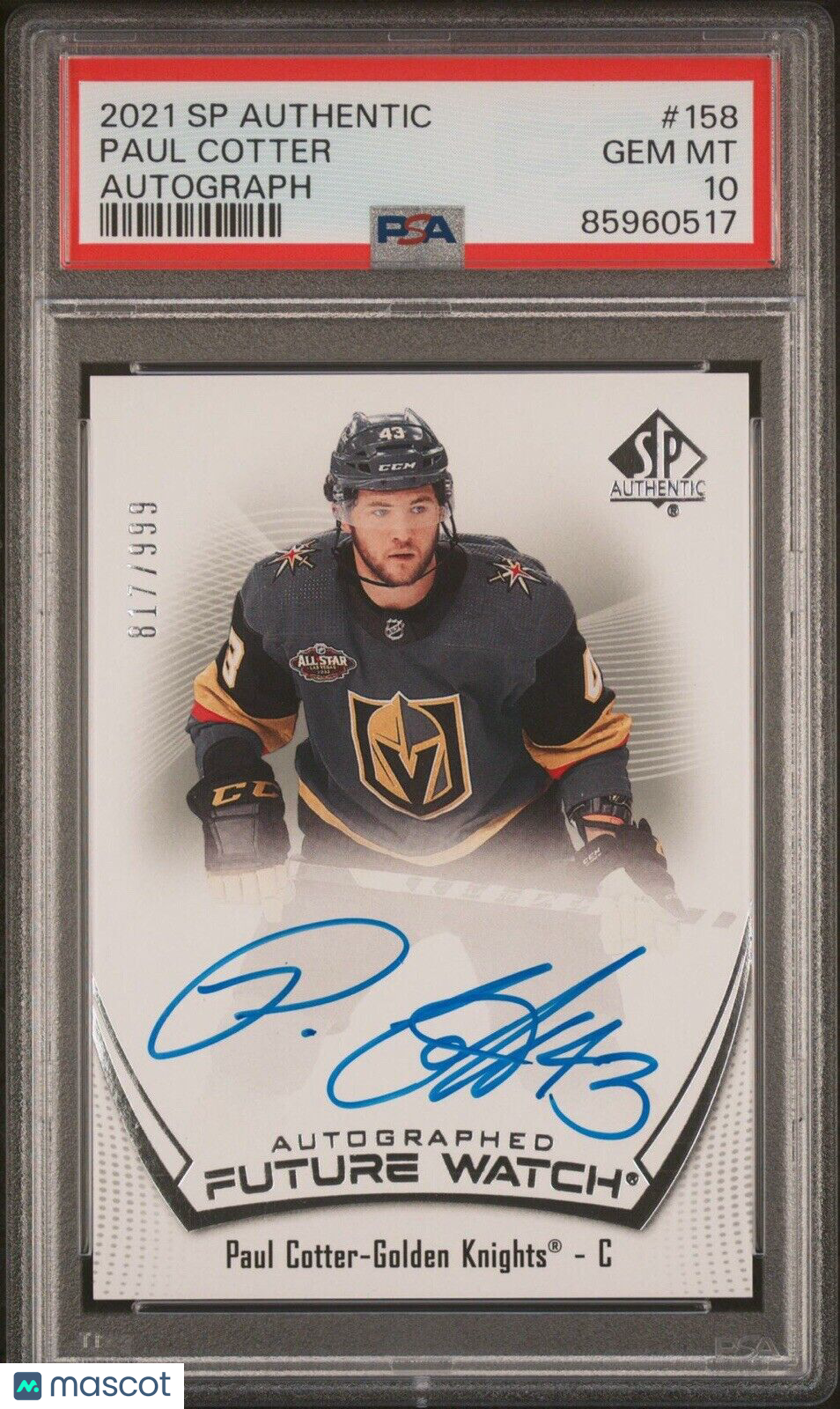 You are purchasing a 2021 SP Authentic Paul Cotter #158 Future Watch Auto / Parallel/Variety Rookie Inscribed PSA 10 Upper Deck. You will receive the exact item in the photographs. Thank you. Listed With Mascot.