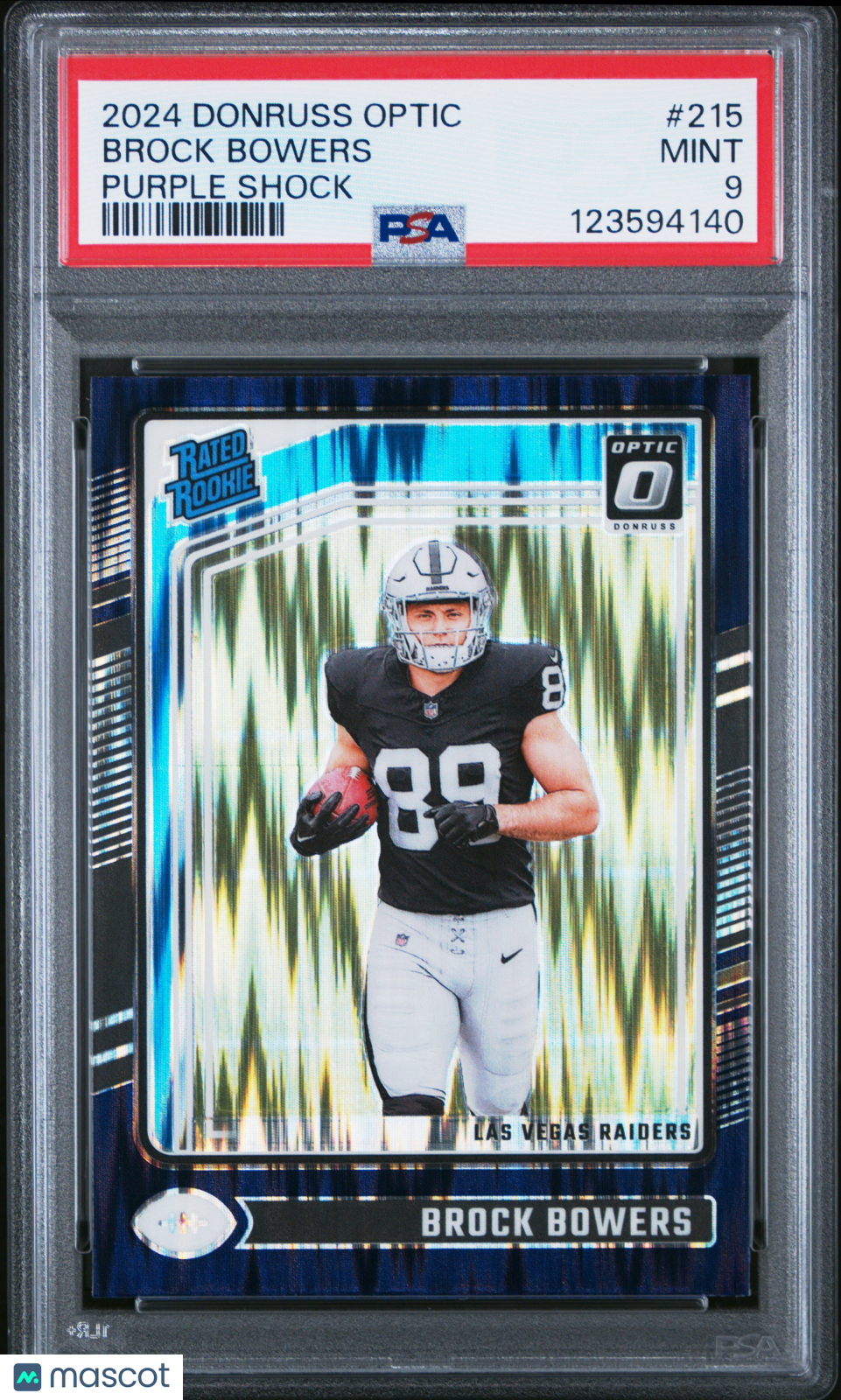 You are purchasing a 2024 Panini Donruss Optic Brock Bowers #215 Purple Shock Rookie PSA 9. You will receive the exact item in the photographs. Thank you. Listed With Mascot.