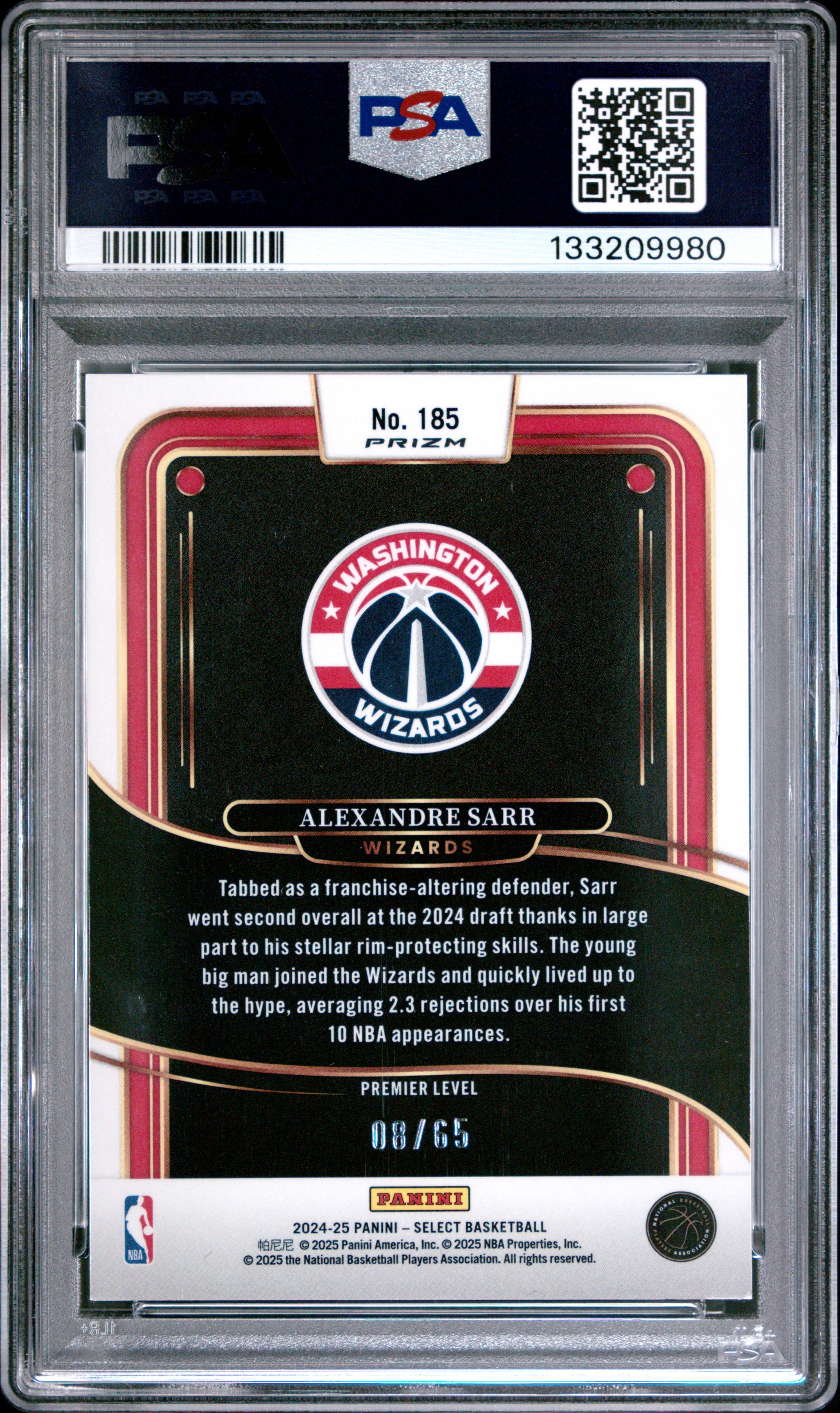 2024 Panini Select - Alexandre Sarr #185 - ROOKIE - Red Tectonic /65 - PSA /65